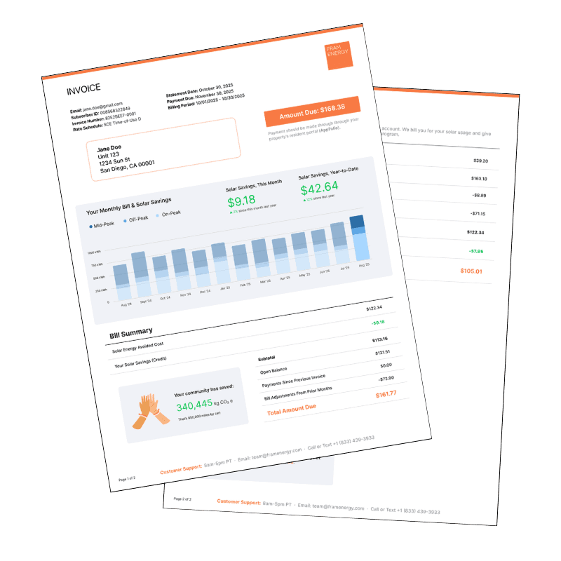 Fram Energy is the end-to-end billing partner for clean energy projects. We handle enrollment, billing, AR tracking, and resident support—so you can focus on deploying more projects.